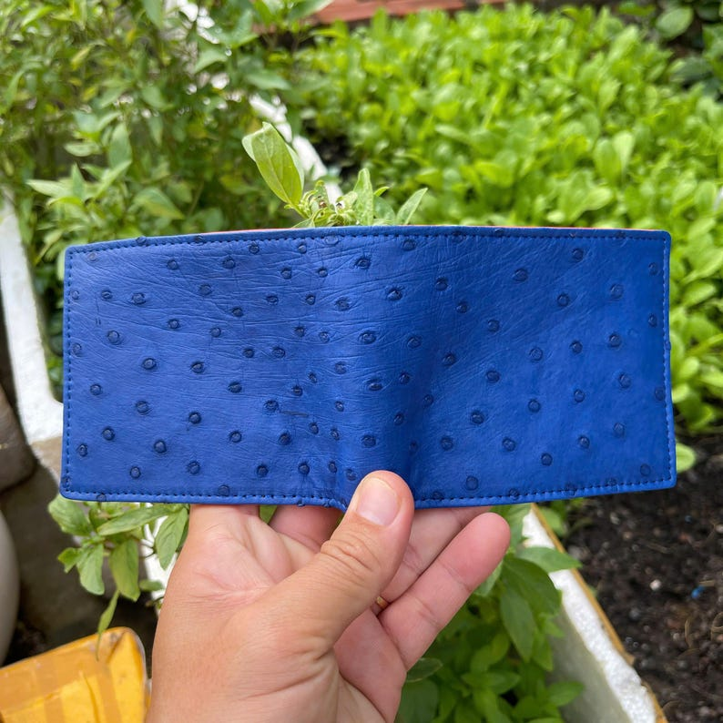 – Outside: Blue Genuine Ostrich Leather